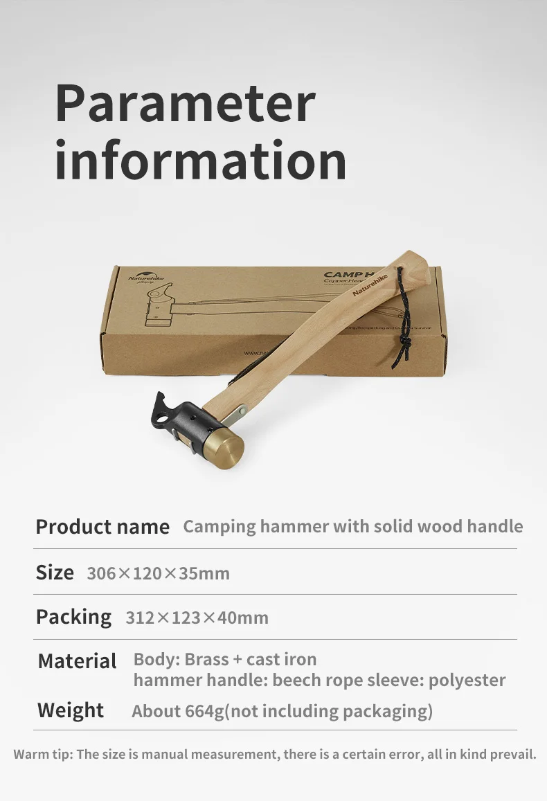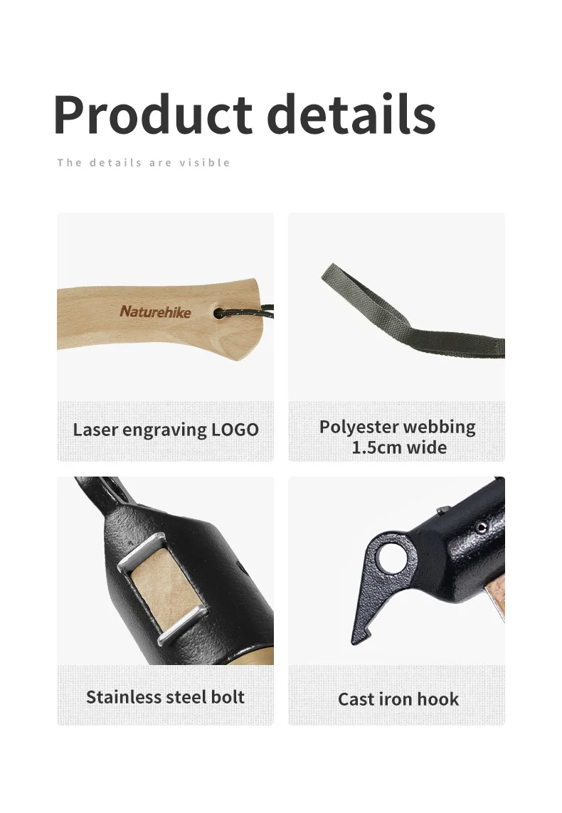 NATUREHIKEМайхны гадас зоох, сугалах зориулалттай Сайн чанарын хүндрүүлсэн гуулин хошуутай Модон бариул оосортой Том майхан, асар зэрэг урт гадасанд тохиромжтой