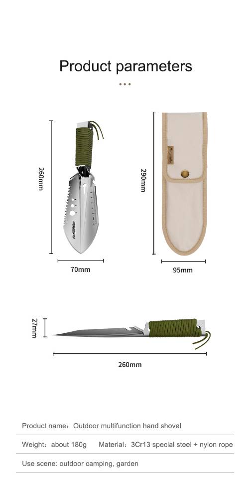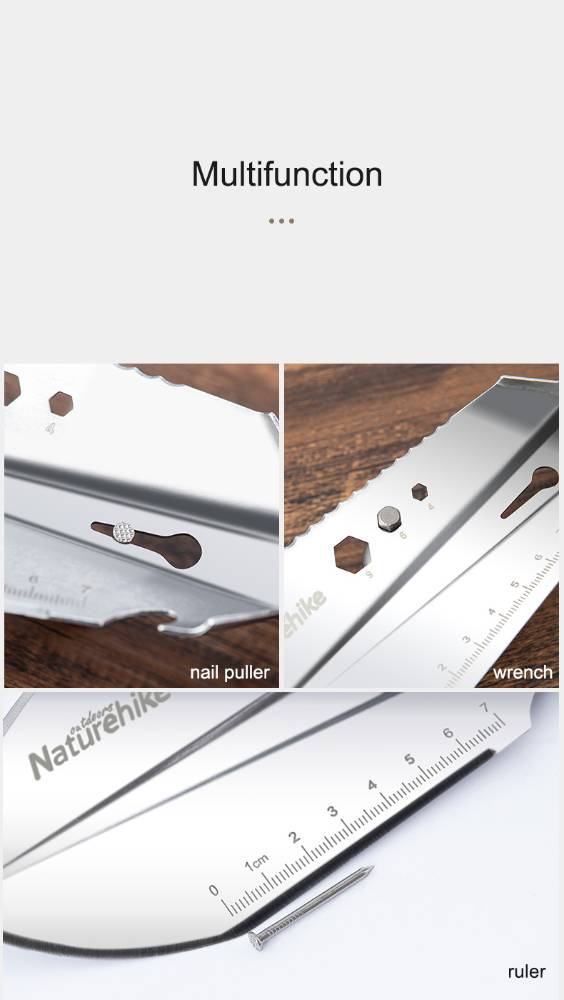 NATUREHIKEАялал зугаалганд хүрз, хөрөө, хутга гэх мэт олон төрлөөр ашиглах боломжтой Сайн чанарын зэвэрдэггүй ган материалтай Зориулалтын ууттай