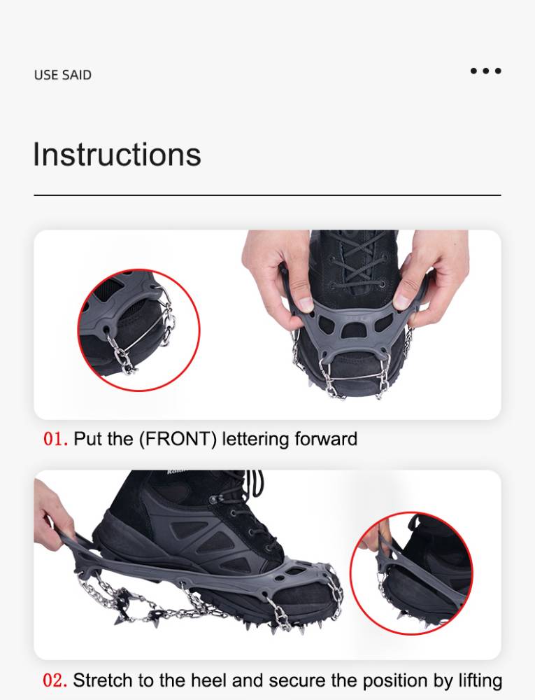 19ш сайн чанарын ган шүд, гинжтэй, ямарч хүйтэнд хөлдөхгүй зузаан резин Давхар оломтой Гутлын размераас хамааран S,M,L резмарын сонголттой