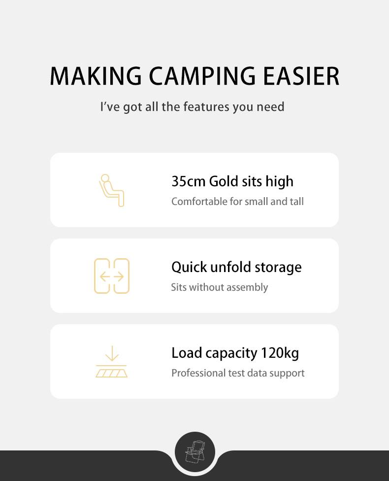 Хэрэглэхэд маш хялбар, гэр бүлийн бүх гишүүдэд тохиромжтой Нимгэн хавтгай эвхэлттэй, хаанч дэлгээд суухад тухтай 120кг хүртэлх даацтай, бат бөх ган араамтай, модон түшлэгтэй, oxford 600D материалтай
