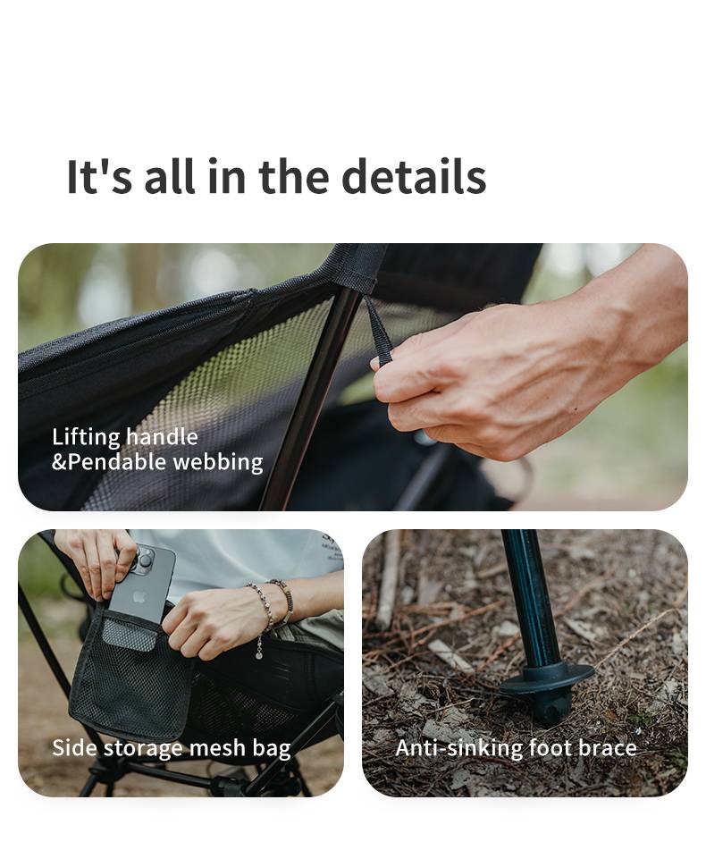 Эвхээд маш жижиг болдог учир хөнгөн авсаархан бүх төрлийн аялалд тохиромжтой 120кг хүртэлх даацтай, 7075 маркын бат бөх хөнгөн угсардаг араамтай Халуунд хөлрөхгүй тортой, хажуудаа кармантай Зориулалтын жижиг цүнхтэй